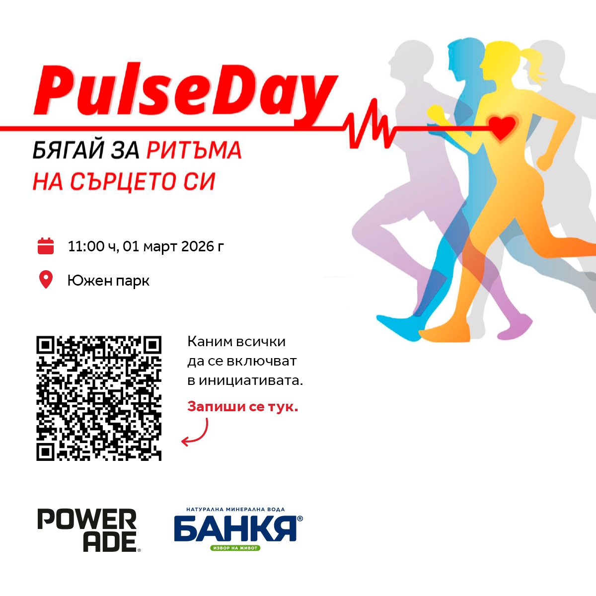 Инициативата „PulseDay: Бягай за ритъма на сърцето си“, посветена на Световния ден на пулса, ще се проведе в партньорство с „Банкя“ и „Powerade“ на 1 март 2026 г. от 11:00 ч. в Южен парк, в София. Пулс Маратонът има за цел да насърчи активния начин на живот и да повиши информираността за превенцията и грижата за сърдечното здраве. Регистрацията за събитието е отворена на: https://ow.ly/gAfh50Yib5S.
