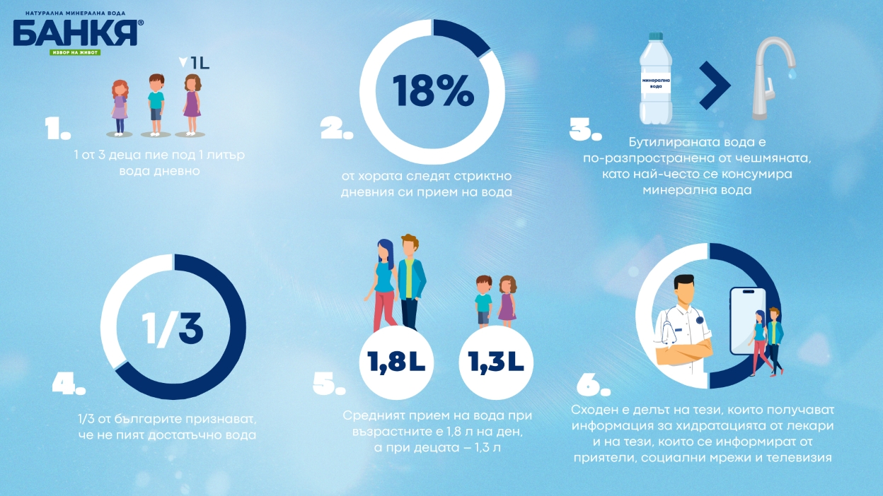 Bulgarians are aware of the importance of hydration, but their actual habits do not meet the recommendations for healthy water intake. Only 18% of people strictly monitor their daily intake, while almost one-third of adults admit they do not drink enough water. These are the results of a nationally representative survey conducted by Ipsos in Bulgaria in 2025 among 1,000 people aged 16 to 69, commissioned by “Bankya.”